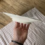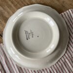 Details: cracks in the earthenware, brown stains, two manufacturing defects on the front, a chip on the back - Round, hollow dish on a stand